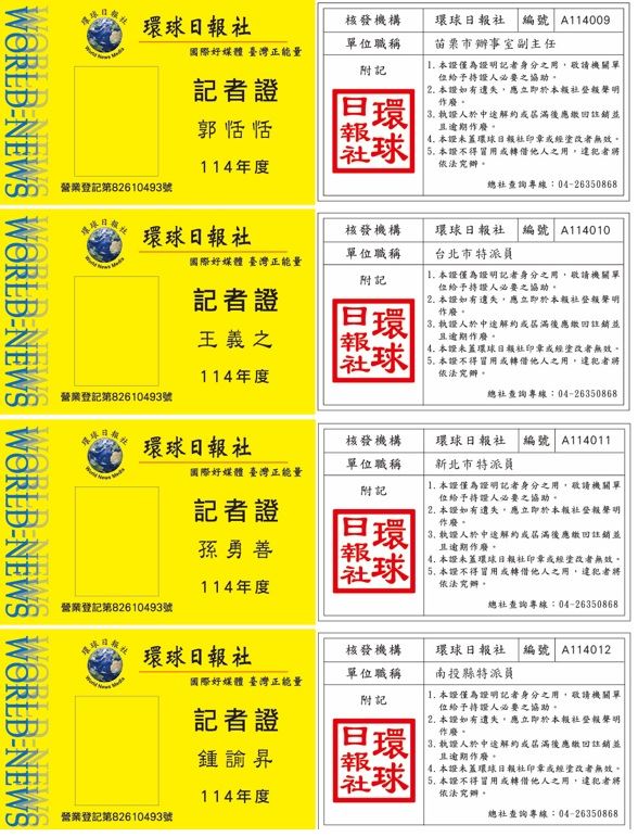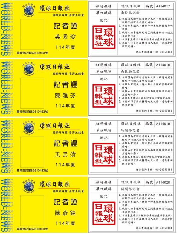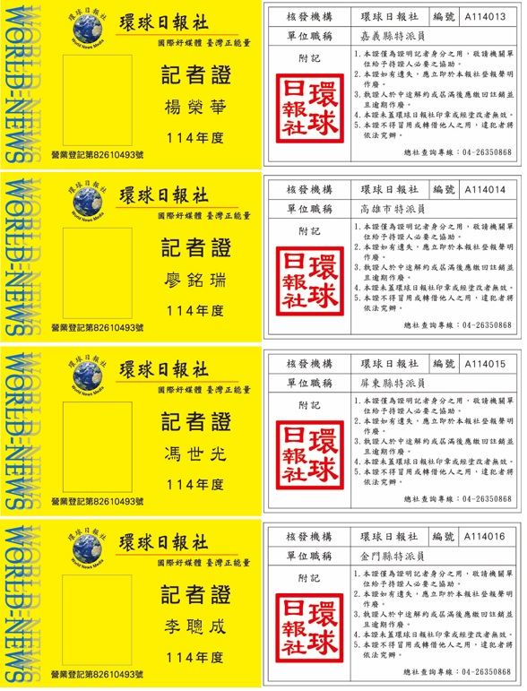 *記者證件過期或不符合上列公告名單,請勿擅自冒用身分!!