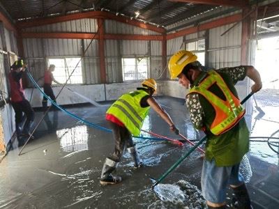 邱雅琳隊長指出,昨日環保局與市府養工處一同進駐大馬村武昌街,有一處住家內雖已初步剷除淤泥,但地板與牆面仍覆滿厚厚一層污泥,環保局利用清溝車水柱大面積沖洗,再搭配人力刷洗,讓埋沒於烏黑淤泥下近10天的地板終於重現原來的地磚顏色,屋主黃阿嬤感動表示:「房子內家具幾乎全毀,但人平安就好!還好有台中市來幫忙,感覺復原看到了希望」。
