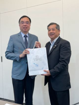 臺灣港務股份有限公司王錦榮總經理(右)與財團法人台灣經濟研究院左峻德副院長(左)共同探討無碳電力新經濟。(臺灣港務公司)