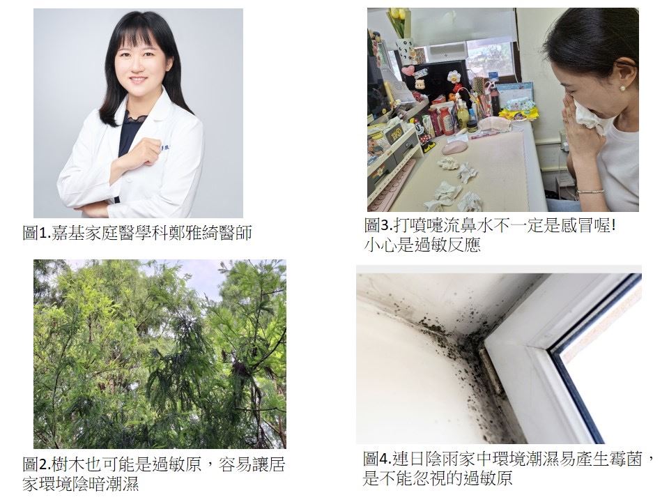 嘉義基督教醫院家庭醫學科鄭雅綺醫師指出,植物過敏原主要來自於花粉與黴菌孢子,尤其春夏之際樹木、雜草、花粉量大,盛夏雨季、秋冬又因潮濕導致黴菌滋生,讓過敏族群一年四季都可能出現症狀。過敏反應發生時,引發打噴嚏、鼻癢、眼睛癢與流淚,甚至造成支氣管收縮,引起咳嗽、胸悶與呼吸困難。
