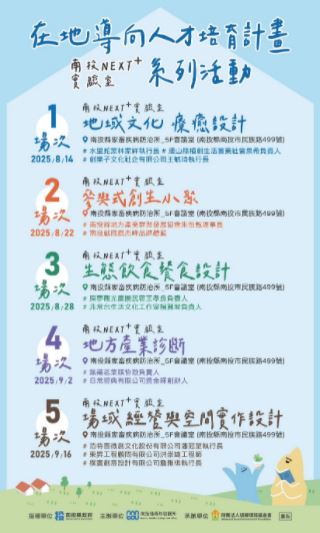 欲了解更多有關課程訊息,請上青年發展所官網(youth.nantou.gov.tw)及追蹤「南投好青年」臉書粉絲專頁掌握更多動態。