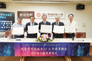 【記者廖銘瑞/高雄報導】國立高雄師範大學於今(3)日舉辦「南臺灣智慧城市AI人才培育聯盟合作備忘錄簽署儀式」。該聯盟由高師大發起,結合鴻海科技集團亞灣2.0高雄研訓基地資源,攜手國立高雄科技大學、國立臺東大學、義守大學及正修科技大學共同簽署合作備忘錄,正式啟動「南臺灣智慧城市AI 人才培育聯盟」的多元合作項目。