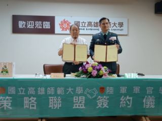 【記者廖銘瑞/高雄報導】為促進學術與文化交流、推動科技創新研發,國立高雄師範大學與陸軍軍官學校於今(29)日上午假高師大和平校區,簽署「策略聯盟合作協議書」,由高師大副校長唐硯漁與陸軍軍官學校教育長黃孫德昌代表簽署,雙方主管團隊共同見證,象徵兩校攜手開啟全新的合作里程碑。未來雙方將結合人才、設備、技術與學術資源,展開多面向的合作,共同打造學研與軍事教育交流的新典範。