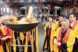 祝聖大典在鐘鼓交鳴後正式開始,儀式按照古禮依序進行主醮獻供、恭讀祝文、行三跪九叩首禮、恭焚文疏,最後禮成鳴炮,祭典隆重莊嚴。