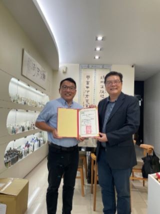 台灣化粧品工業同業公會陳政治理事長 (左)、歐思佛生技創辦人陳耀寬博士 (右)