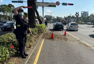 【記者廖銘瑞/高雄報導】今(14)日9時5分許,小港分局小港派出所、小港交通分隊接獲通報,於小港區中山四路與大業北路口有交通意外事故 ,旋即派員到場處理,並測繪交通意外事故現場圖及指揮管制與疏導交通。